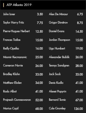 Och så avslutar vi med Atlanta som är starten på det som är årets sista riktigt stora grej i tennisvärlden. Den andra delen av den amerikanska hardcourtsäsongen som kommer avslutas med US Open som startar om en dryg månad.