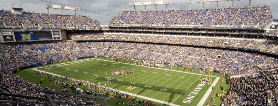 I Baltimore, Maryland hittar vi Baltimore Ravens M&T Bank Stadium. Arenan som tar in 71,008 åskådare byggdes 1998 och har under sina 19 år blivit uppskattad för att vara lättillgänglig och tillmötesgående. Här leder quarterbacken Joe Flacco sina mannar framför de skrikande hemmafansen. Artister som Metallica, U2, Jay Z och Beyonce är några av akterna som uppträtt på M&T Bank Stadium.