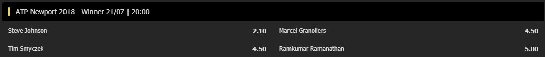 Jag skulle istället ta antingen Granollers eller Smyczek. Jag tror Granollers har en riktigt fin chans mot Johnson idag, och vinner han den matchen är han sen favorit i finalen. Smyczek är favorit i den andra semifinalen mot Ramanathan, jag tror han tar den, och att sitta med honom till 4,50 i finalen är i så fall naturligtvis trevligt.