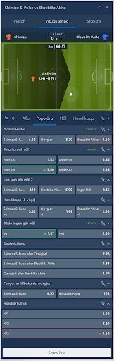 Som man ser på bilden nedan får man enkelt upp möjliga liveodds för en match. Även om matchen inte är särskilt stor finns det ändå många spel att välja mellan.
