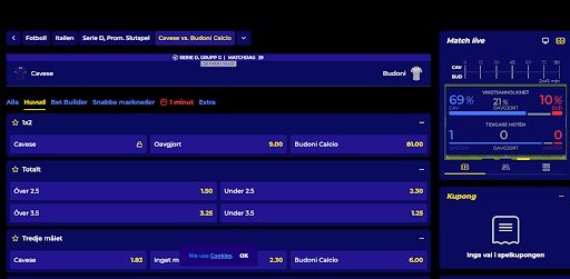 Under “Toppligor” hittar du det som är hetast just nu. Längre ner finns det en meny med alla sporter. När du klickar på en sport dyker olika ligor och turneringar upp som du kan klicka vidare in på.