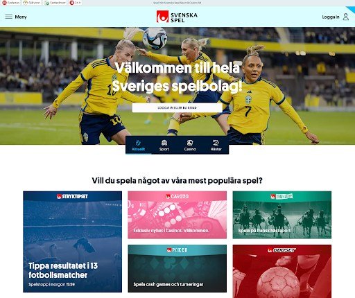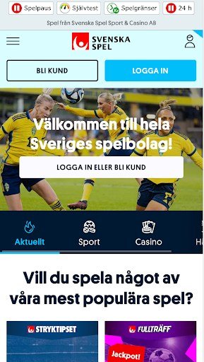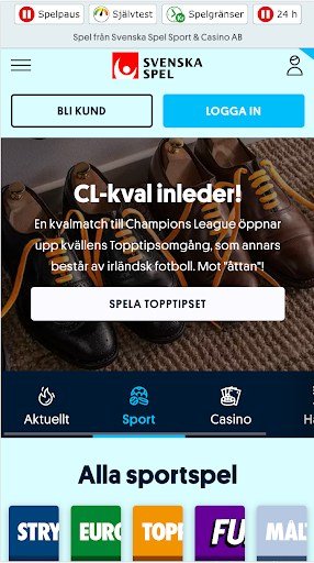 När man går in på deras sportsektion hittar man direkt alla deras sportspel. Svenska Spel Topptipset eller Stryktipset finns tillgängligt på snabblänkar.