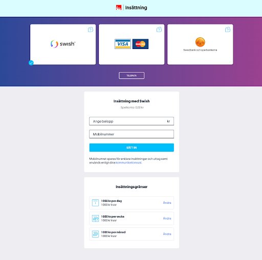 5. Gör en insättning med någon av Svenska Spels insättningsmetoder.