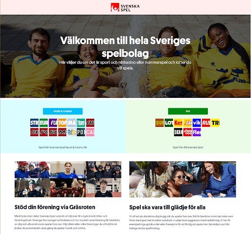 Svenska Spels hemsida är både simpel och stilren med en tydlig meny längst upp på sidan där du enkelt finner det du söker. När den nya spelmarknaden kom igång och licenssystemet började gälla 1 januari 2019 lanserade Svenska Spel en hemsida där man särade på "Tur" och "Sport & Casino". Det här innebär att det första du gör när du kommer till Svenska Spels hemsida är att välja om du vill spela på Sport-spel eller Tur-spel.